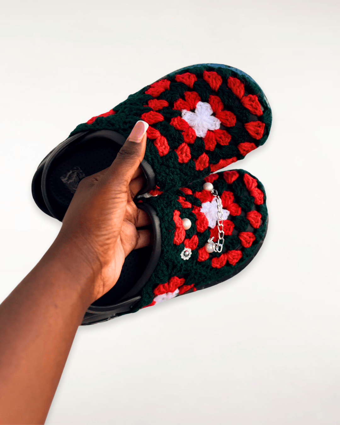 Réalisée à partir de fils résistants et souples et de crocs , la Loomfit offre une sensation de confort et de légèreté, tout en assurant un bon maintien du pied. Ses couleurs vives et harmonieuses rendent hommage à la richesse culturelle africaine, tandis que ses motifs en crochet pixel traduisent une expression artistique forte et unique. Chaque paire Loomfit raconte une histoire : celle d’un travail patient, d’une passion transmise à travers les mailles, et d’une création qui unit style, culture et confort.